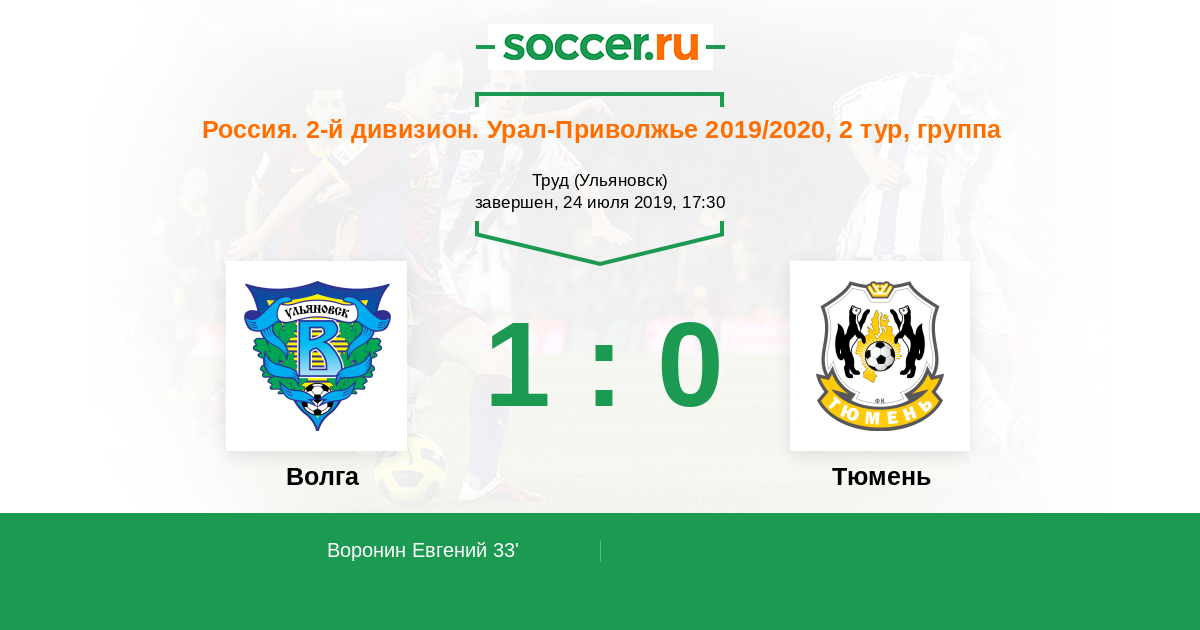 Протокол матча Волга против Тюмень