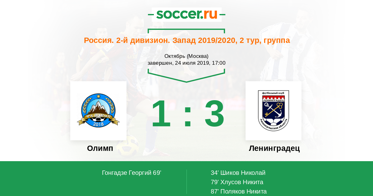 Протокол матча Олимп против Ленинградец