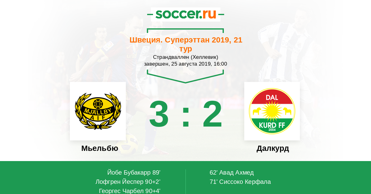 Протокол матча Мьельбю против Далкурд