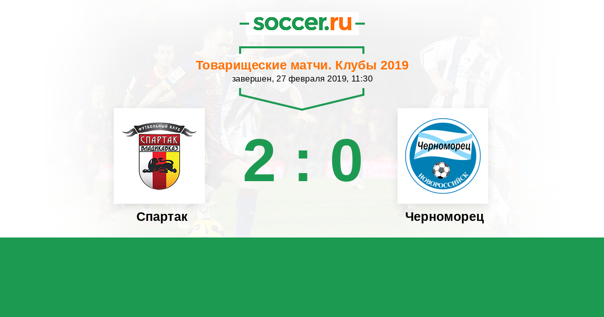 Россия. Вторая лига. Группа 1 05.10.2019 Черноморец Логотип футбольный клуб Черноморец (Новороссийск) 3:0 Логотип футбольный клуб Спартак (Владикавказ) Спартак