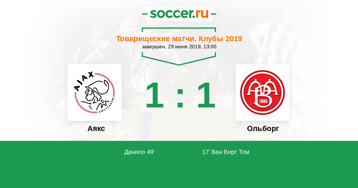 Протокол матча Аякс против Ольборг