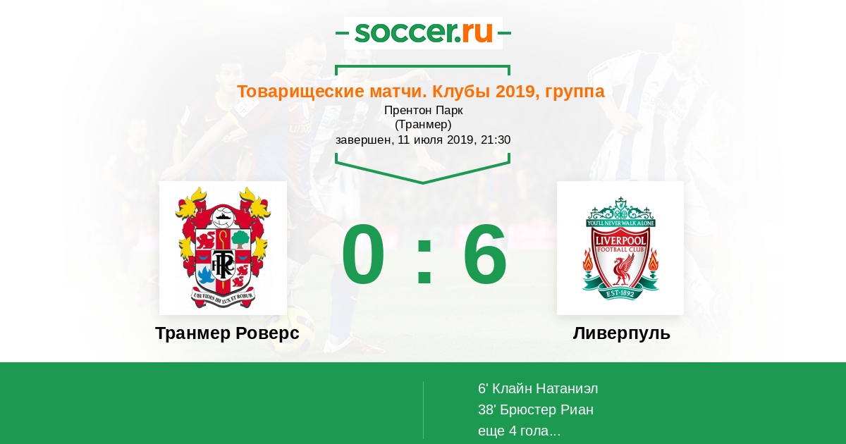 Протокол матча Транмер Роверс против Ливерпуль