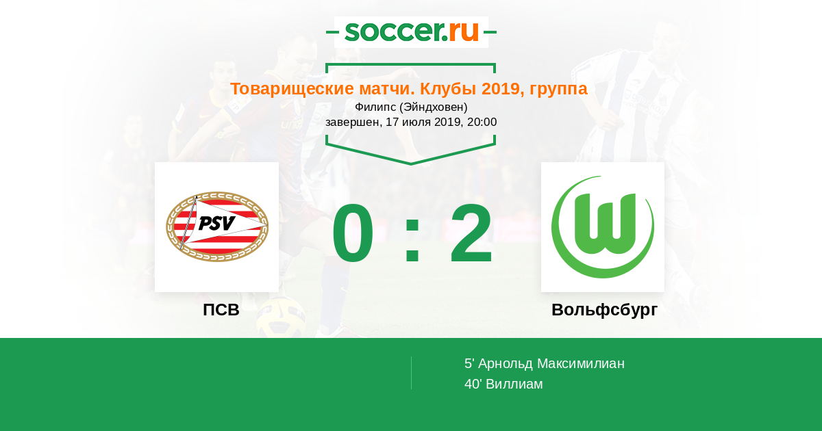 Протокол матча ПСВ против Вольфсбург