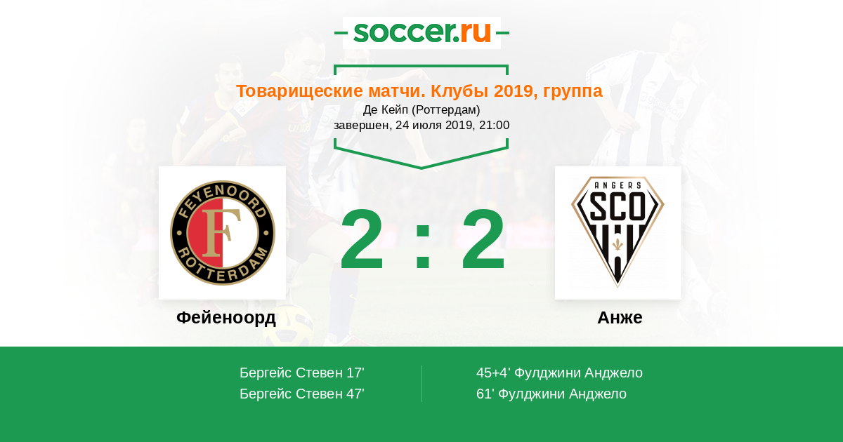 Протокол матча Фейеноорд против Анже