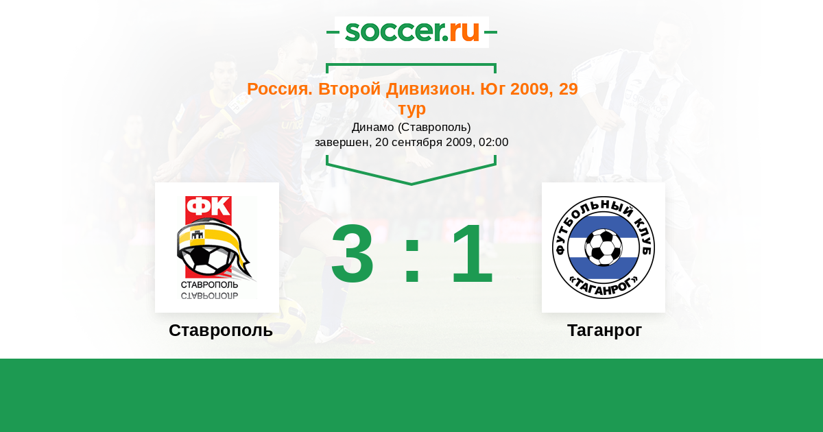 Россия. Вторая лига. Группа 1 20.09.2009 Ставрополь Логотип футбольный клуб Ставрополь 3:1 Логотип футбольный клуб Таганрог Таганрог