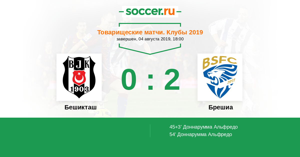 Протокол матча Бешикташ против Брешиа