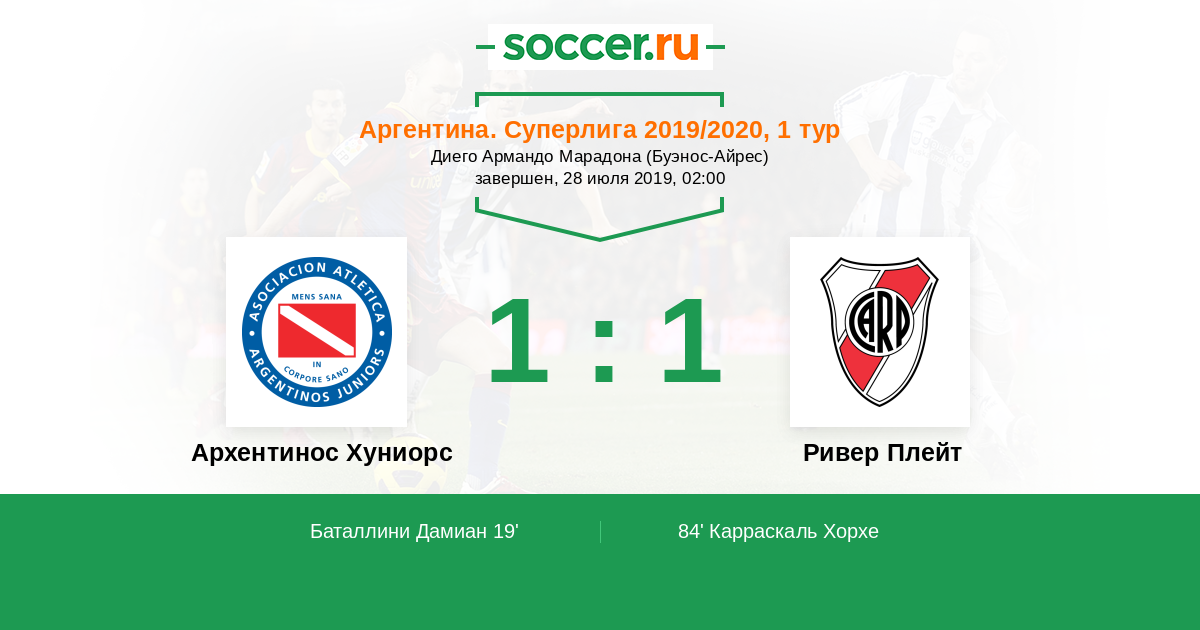Протокол матча Архентинос Хуниорс против Ривер Плейт