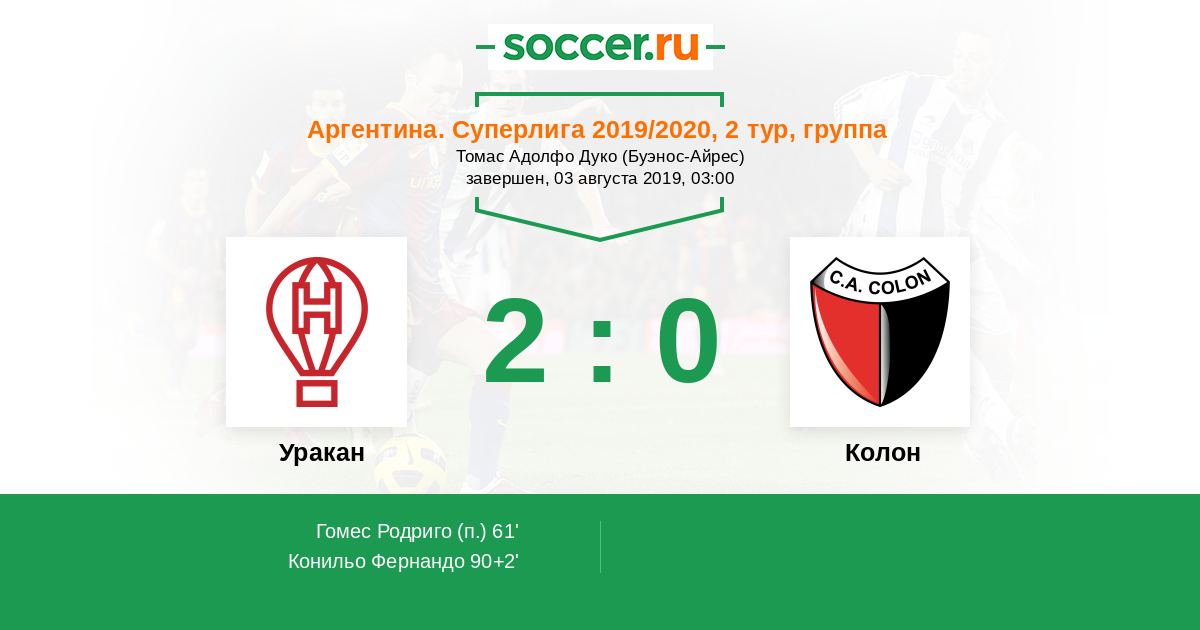 Протокол матча Уракан против Колон