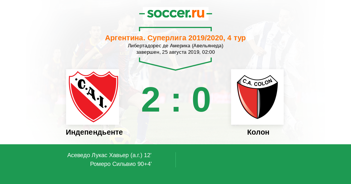 12' (1:0) Автогол Асеведо Лукас Хавьер (2)