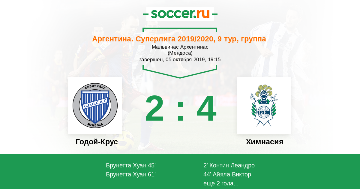 Протокол матча Годой-Крус против Химнасия