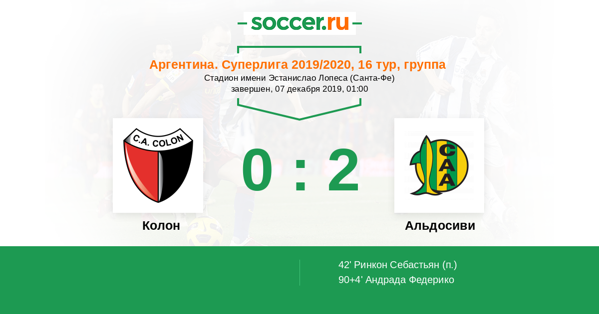 Протокол матча Колон против Альдосиви