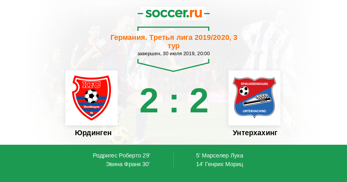 Протокол матча Юрдинген против Унтерхахинг