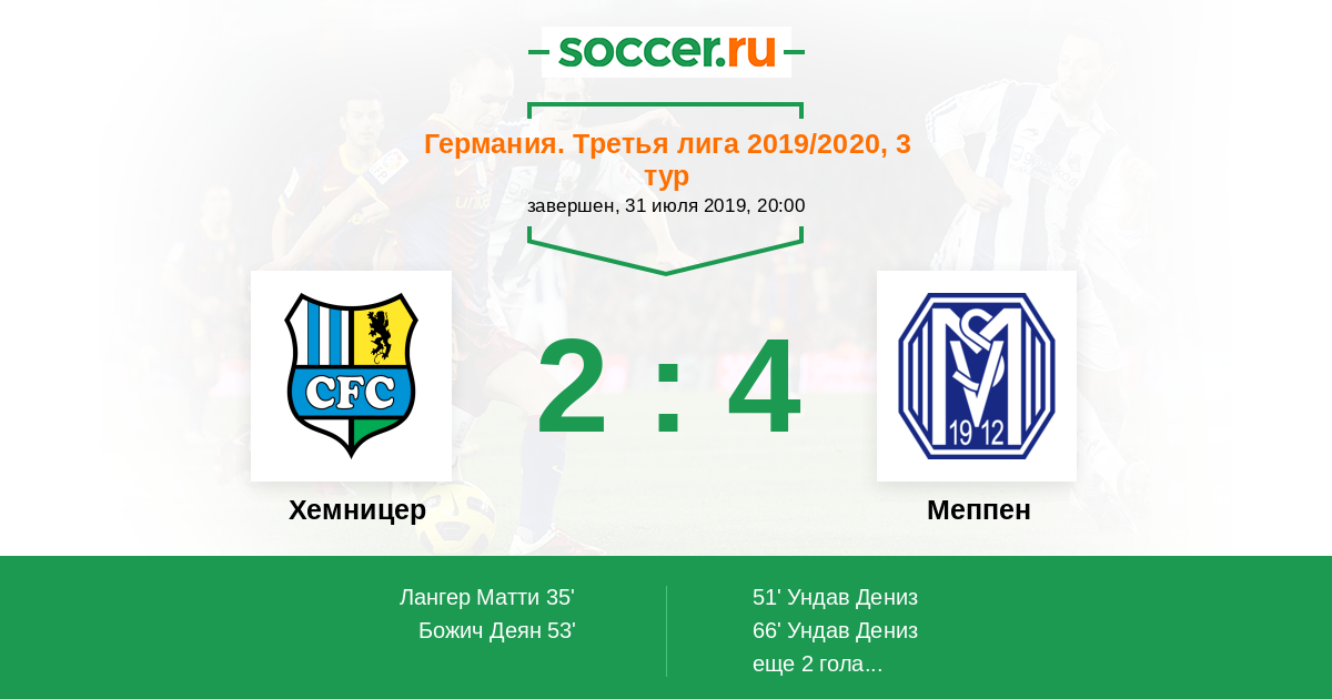 Протокол матча Хемницер против Меппен