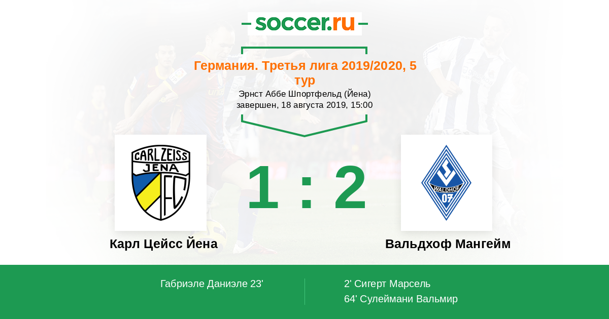 Протокол матча Карл Цейсс Йена против Вальдхоф Мангейм