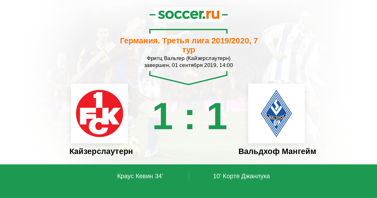 Протокол матча Кайзерслаутерн против Вальдхоф Мангейм