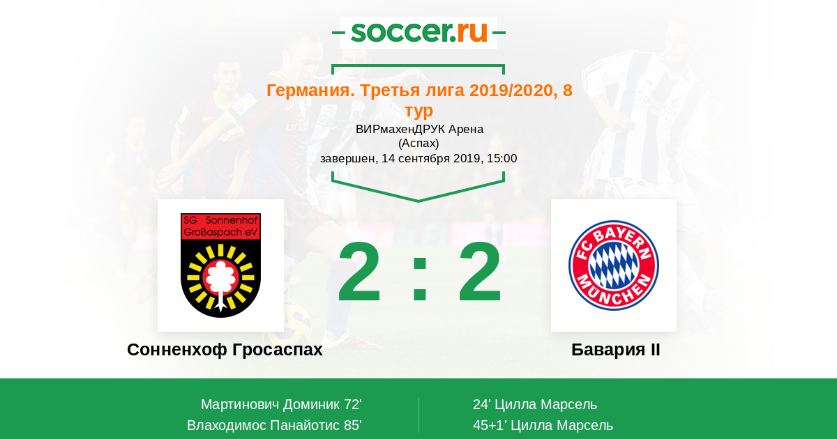 Протокол матча Сонненхоф Гросаспах против Бавария II