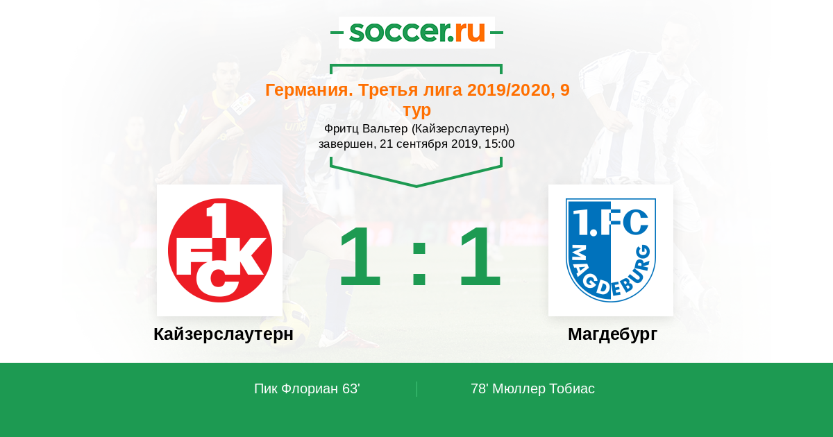 Протокол матча Кайзерслаутерн против Магдебург