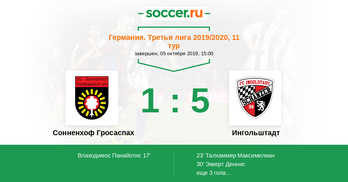 Протокол матча Сонненхоф Гросаспах против Ингольштадт