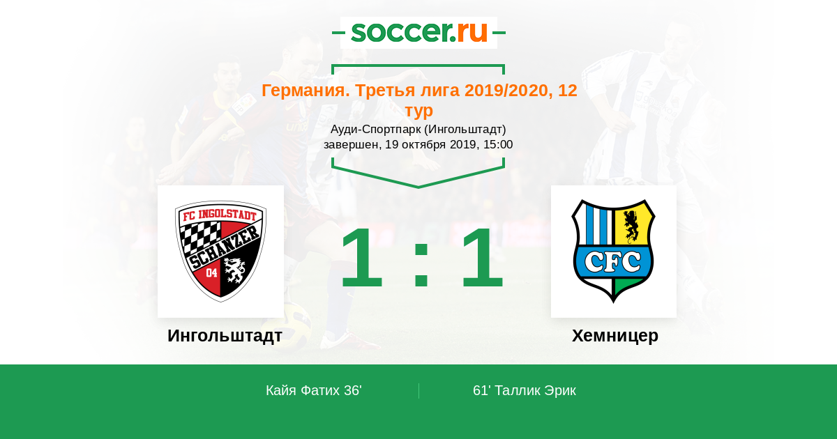 61' (1:1) Таллик Эрик (17) (Боль Даниэль (18))