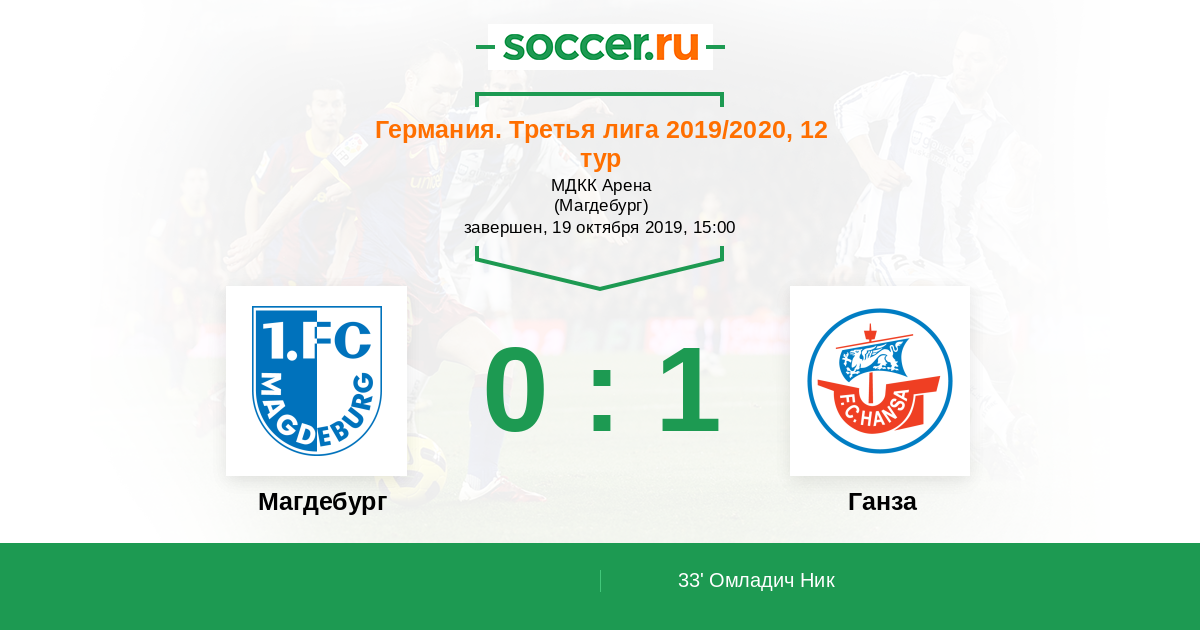 Протокол матча Магдебург против Ганза