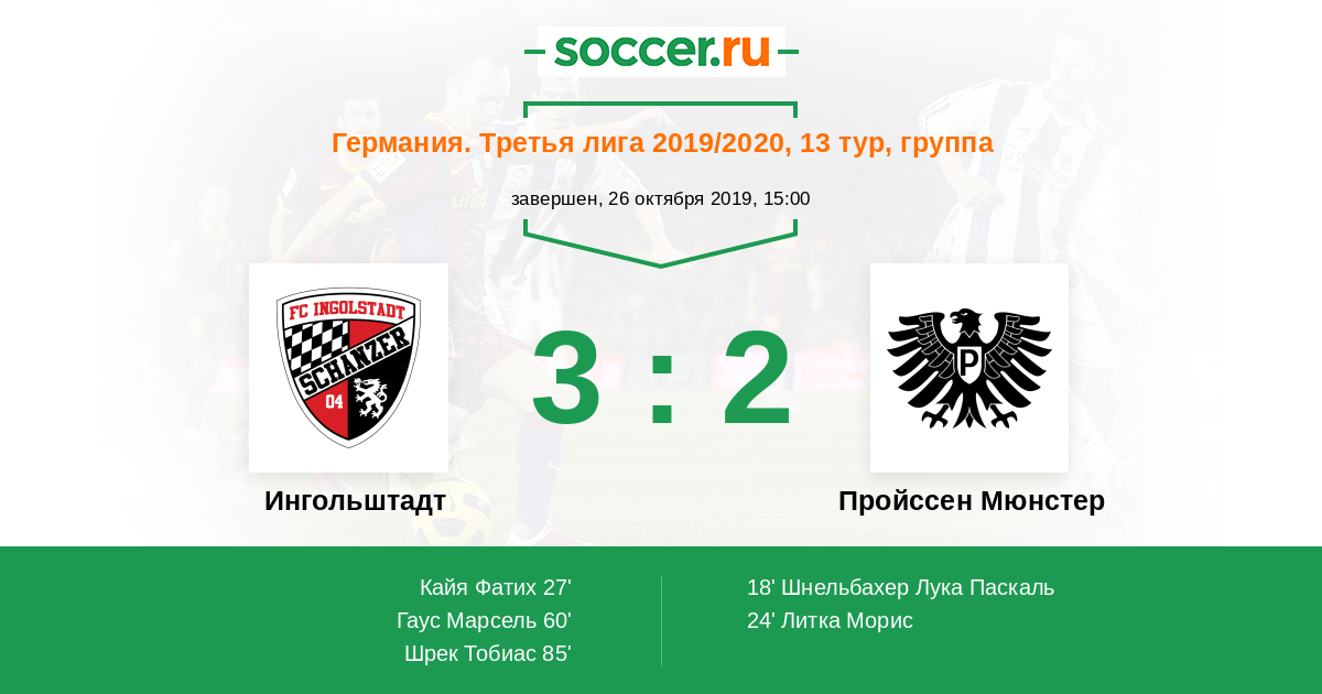 Протокол матча Ингольштадт против Пройcсен Мюнстер