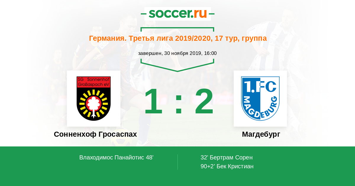 Протокол матча Сонненхоф Гросаспах против Магдебург