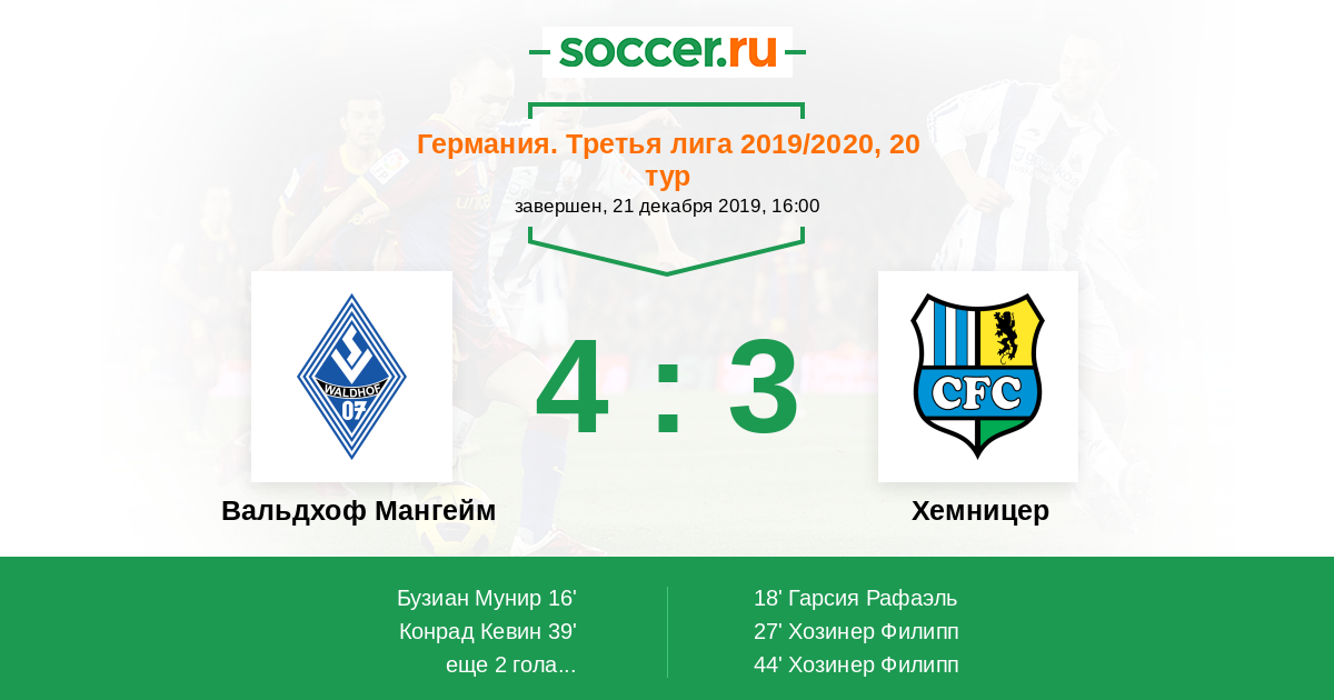 Протокол матча Вальдхоф Мангейм против Хемницер