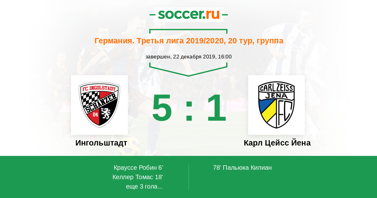 Протокол матча Ингольштадт против Карл Цейсс Йена