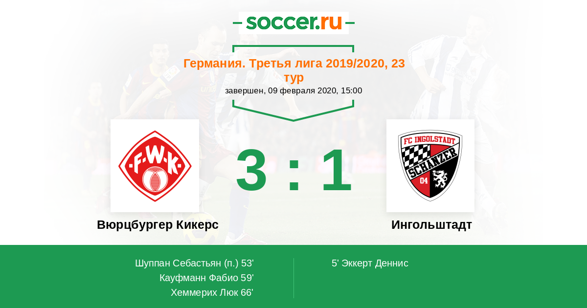 Протокол матча Вюрцбургер Кикерс против Ингольштадт