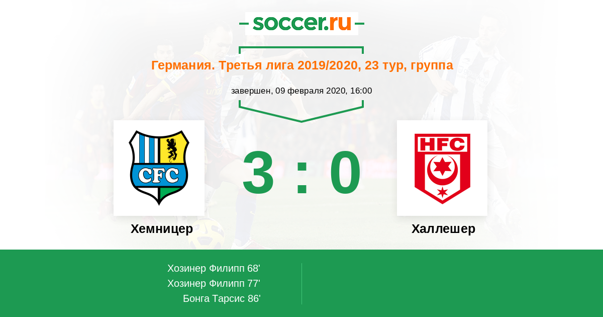 Протокол матча Хемницер против Халлешер