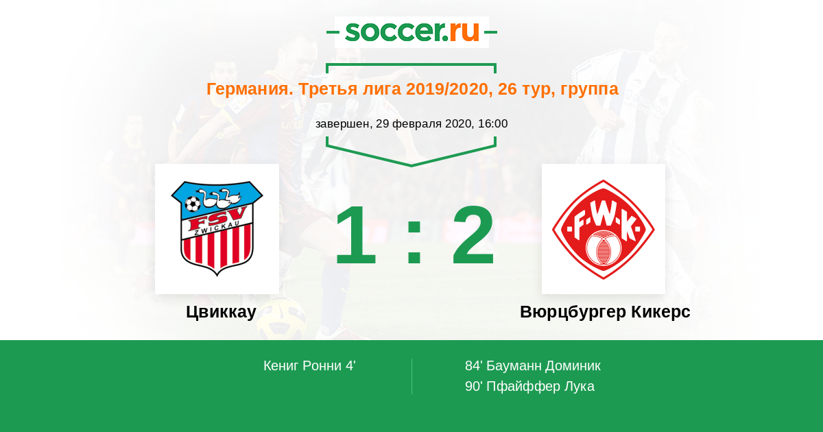 Протокол матча Цвиккау против Вюрцбургер Кикерс