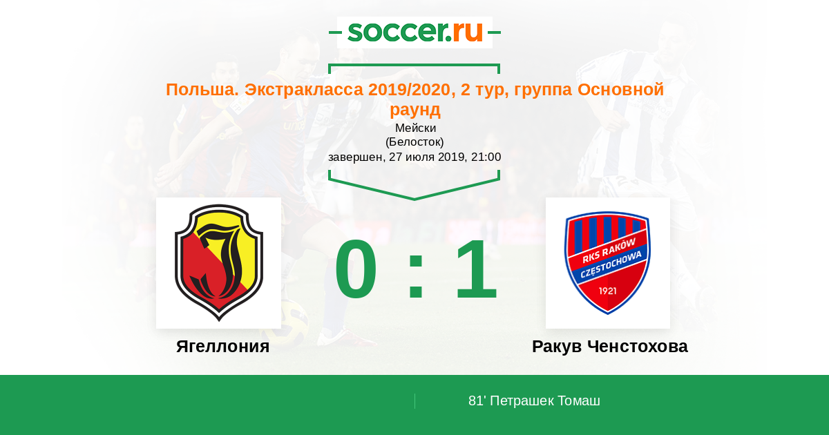 Протокол матча Ягеллония против Ракув Ченстохова