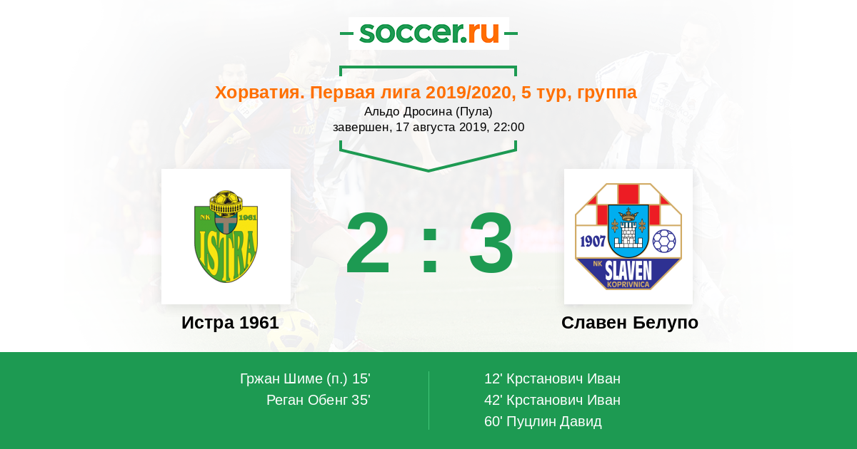 Протокол матча Истра 1961 против Славен Белупо
