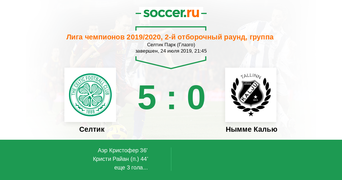 Протокол матча Селтик против Нымме Калью