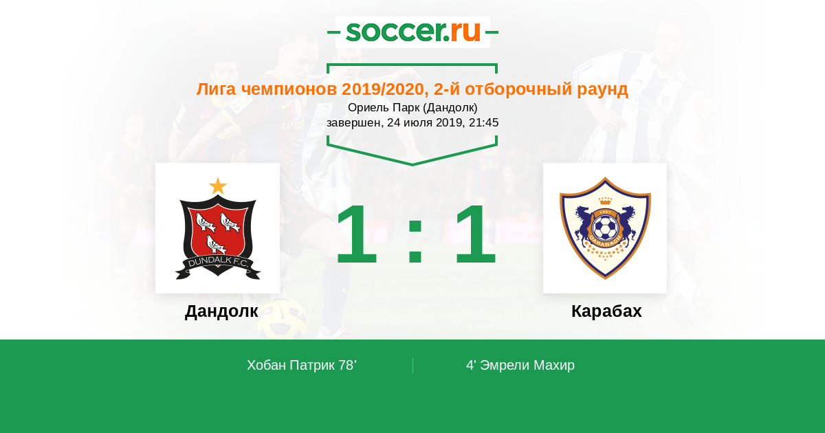 Протокол матча Дандолк против Карабах