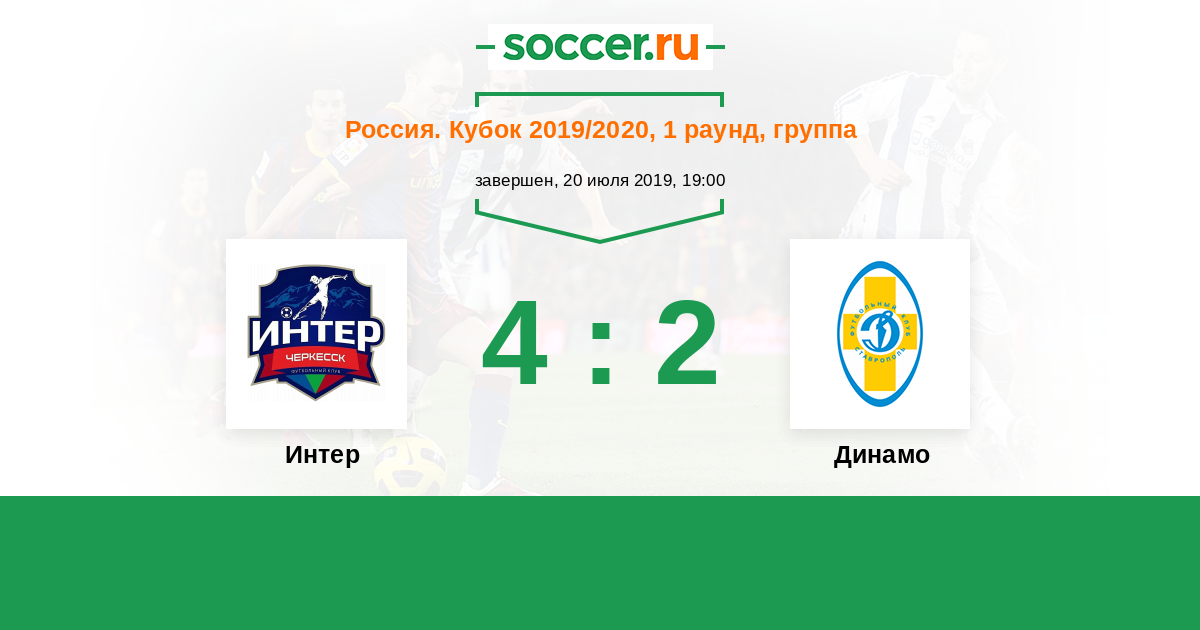 Россия. Вторая лига. Группа 1 16.07.2019 Динамо Ставрополь Логотип футбольный клуб Динамо Ставрополь 3:0 Логотип футбольный клуб Интер (Черкесск) Интер