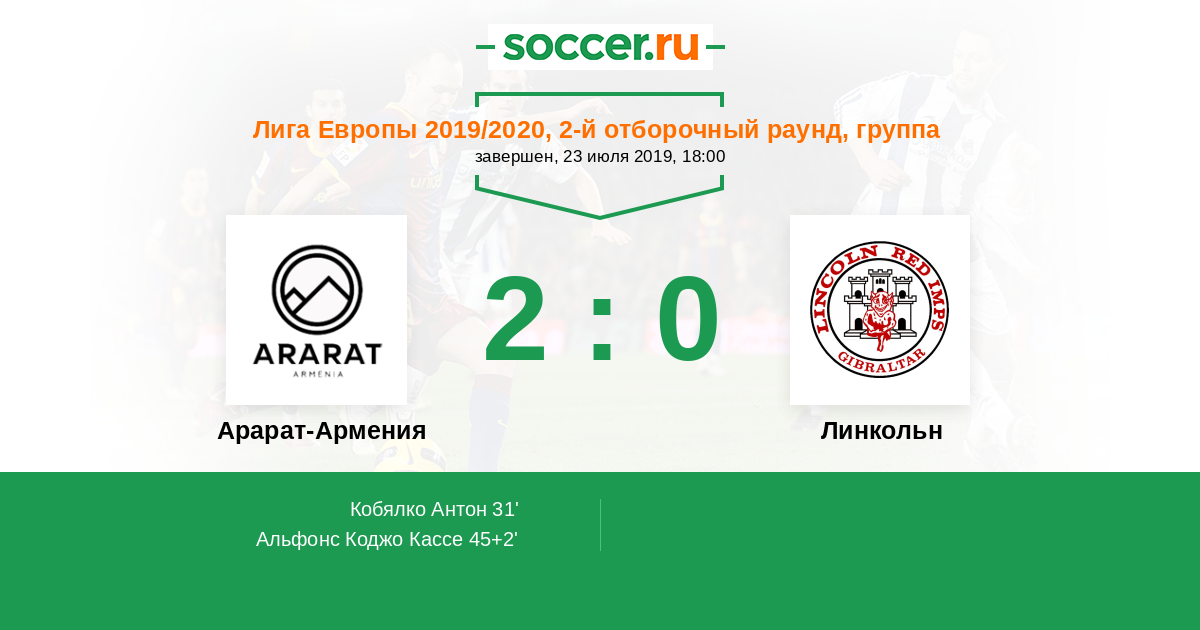 Протокол матча Арарат-Армения против Линкольн