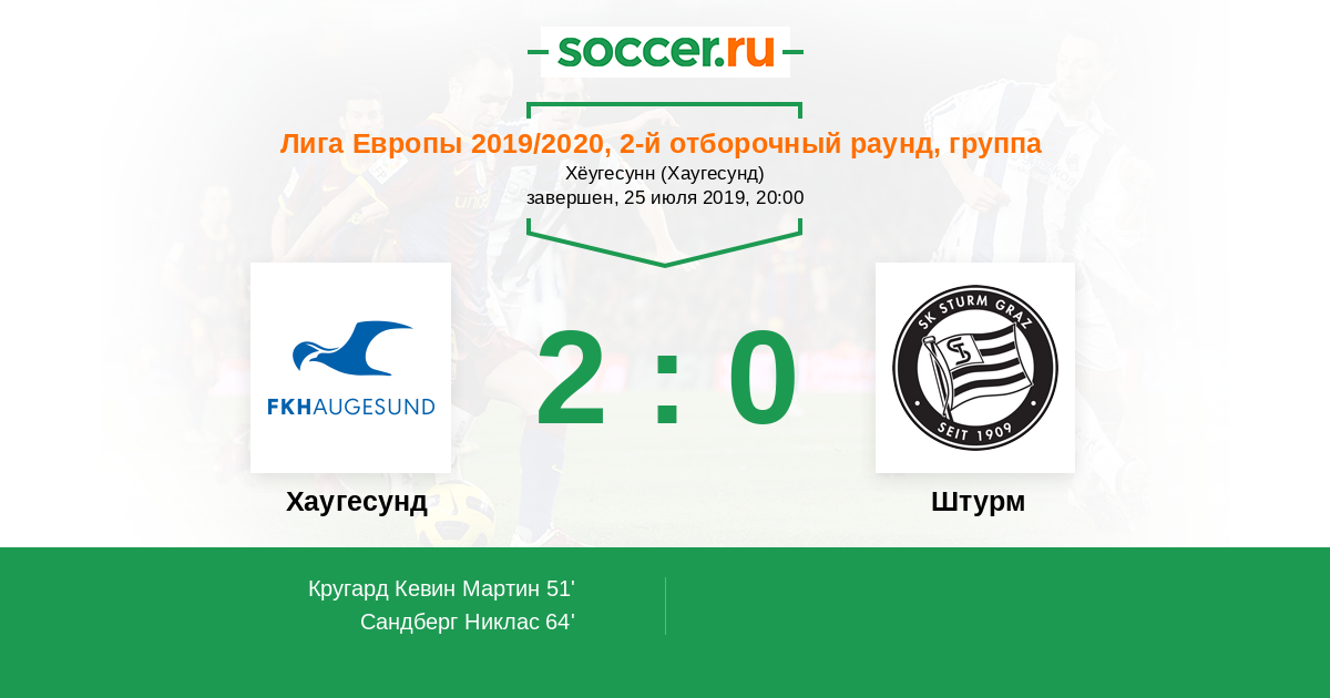 Протокол матча Хаугесунд против Штурм