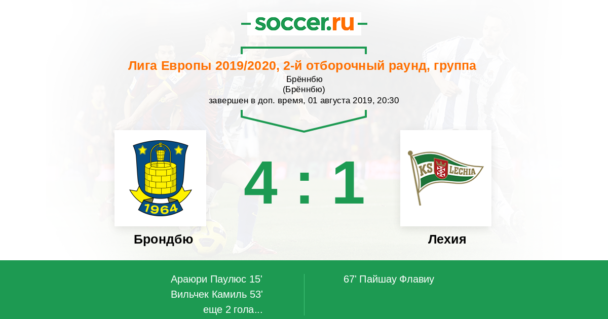 Протокол матча Брондбю против Лехия