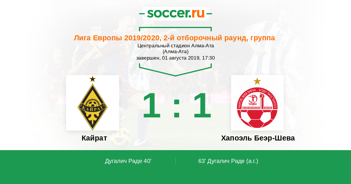 Протокол матча Кайрат против Хапоэль Беэр-Шева