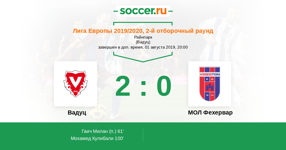 Протокол матча Вадуц против МОЛ Фехервар