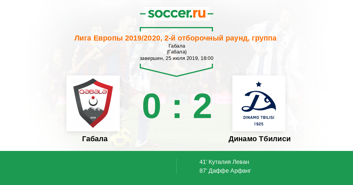 Протокол матча Габала против Динамо Тбилиси