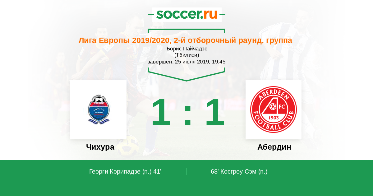 Протокол матча Чихура против Абердин