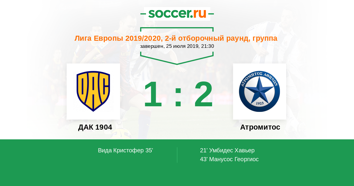 Протокол матча ДАК 1904 против Атромитос