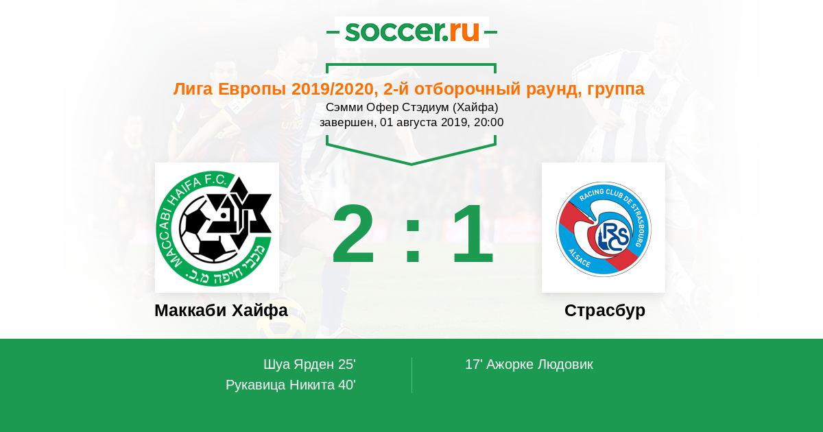 Протокол матча Маккаби Хайфа против Страсбур