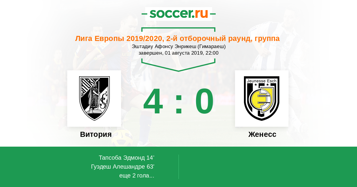 Протокол матча Витория против Женесс