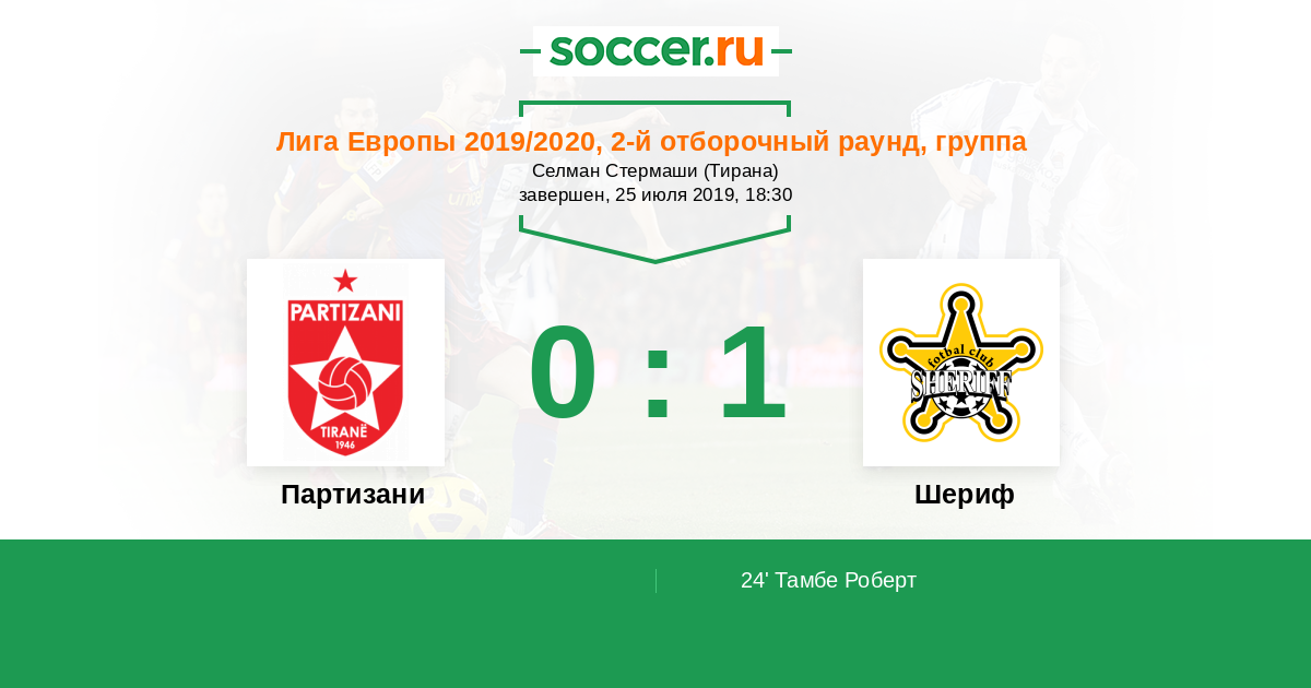 Протокол матча Партизани против Шериф