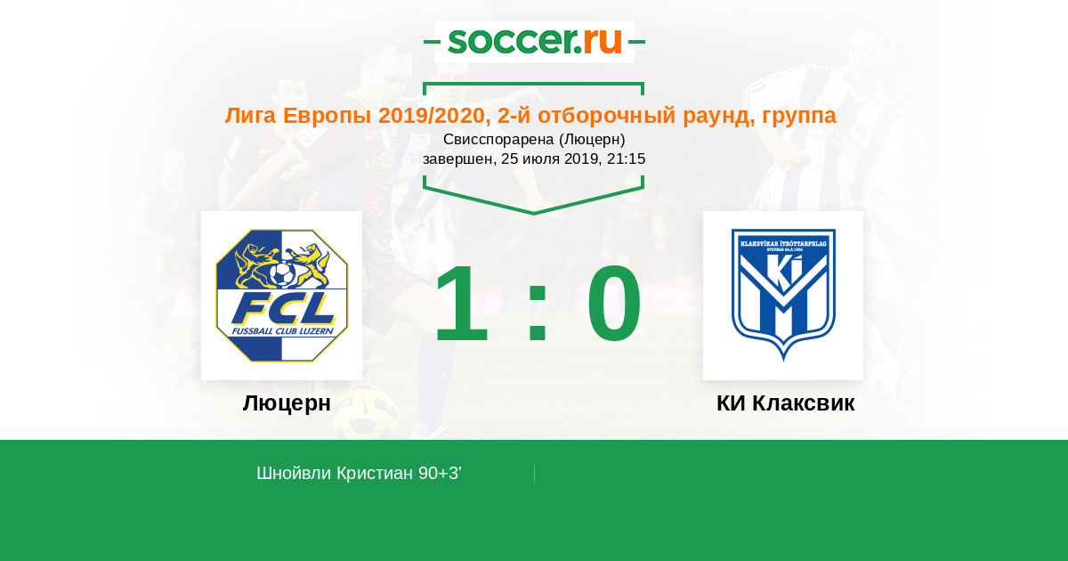 Протокол матча Люцерн против КИ Клаксвик
