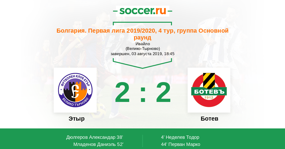 Протокол матча Этыр против Ботев