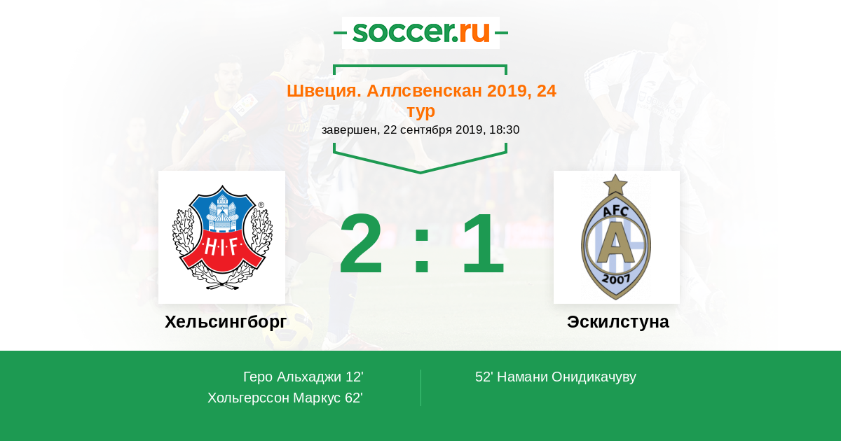 Протокол матча Хельсингборг против Эскилстуна